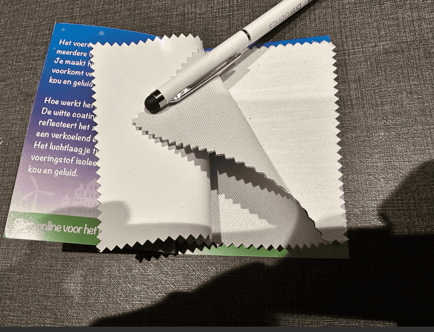 Het boekje bevat drie stukjes stof met verschillende voeringen: