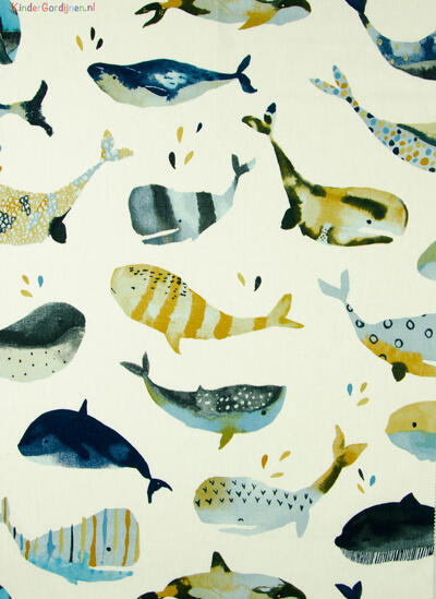 Deze gordijnstof met de naam Whale Watching is gemaakt van de beste materialen waardoor het gordijn mooi in de plooi valt.