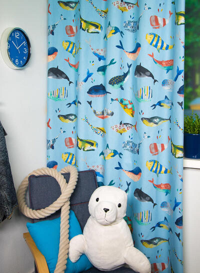 Deze gordijnstof met de naam Whale Watching is gemaakt van de beste materialen waardoor het gordijn mooi in de plooi valt.