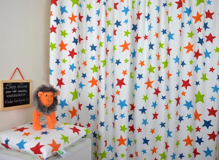 Deze sterren gordijnen zijn ideaal omdat ze kleurrijk én tijdloos zijn. Ook leverbaar in 5 verschillende kleurpaletten, waardoor zij voor zowel jongens- als meisjeskamer geschikt zijn. Jong & oud zou toch graag eens onder een sterrenhemel slapen? Daarom is het zo leuk om dit thema uit te breiden. De gordijnstof kan ook als vouwgordijn gemaakt worden en naar wens gevoerd. Welterusten sterretjes!