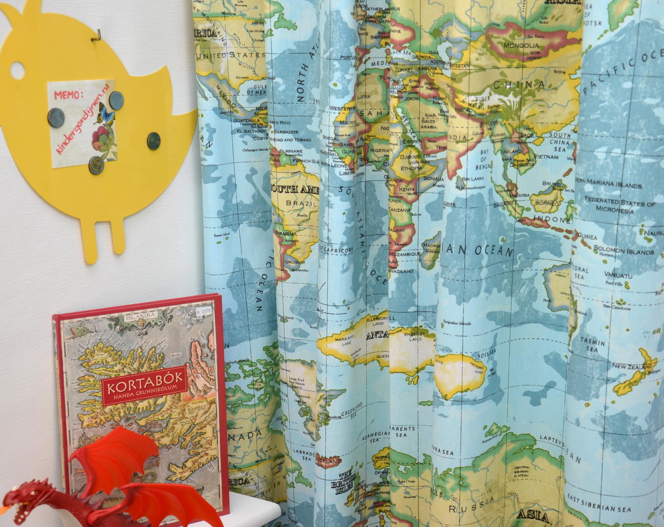 Laat uw kinderen de hele wereld rondreizen met deze wereldkaart op de gordijnen. Dit gordijn past perfect in de kinderkamer van alle jonge ontdekkingsreizigers.
