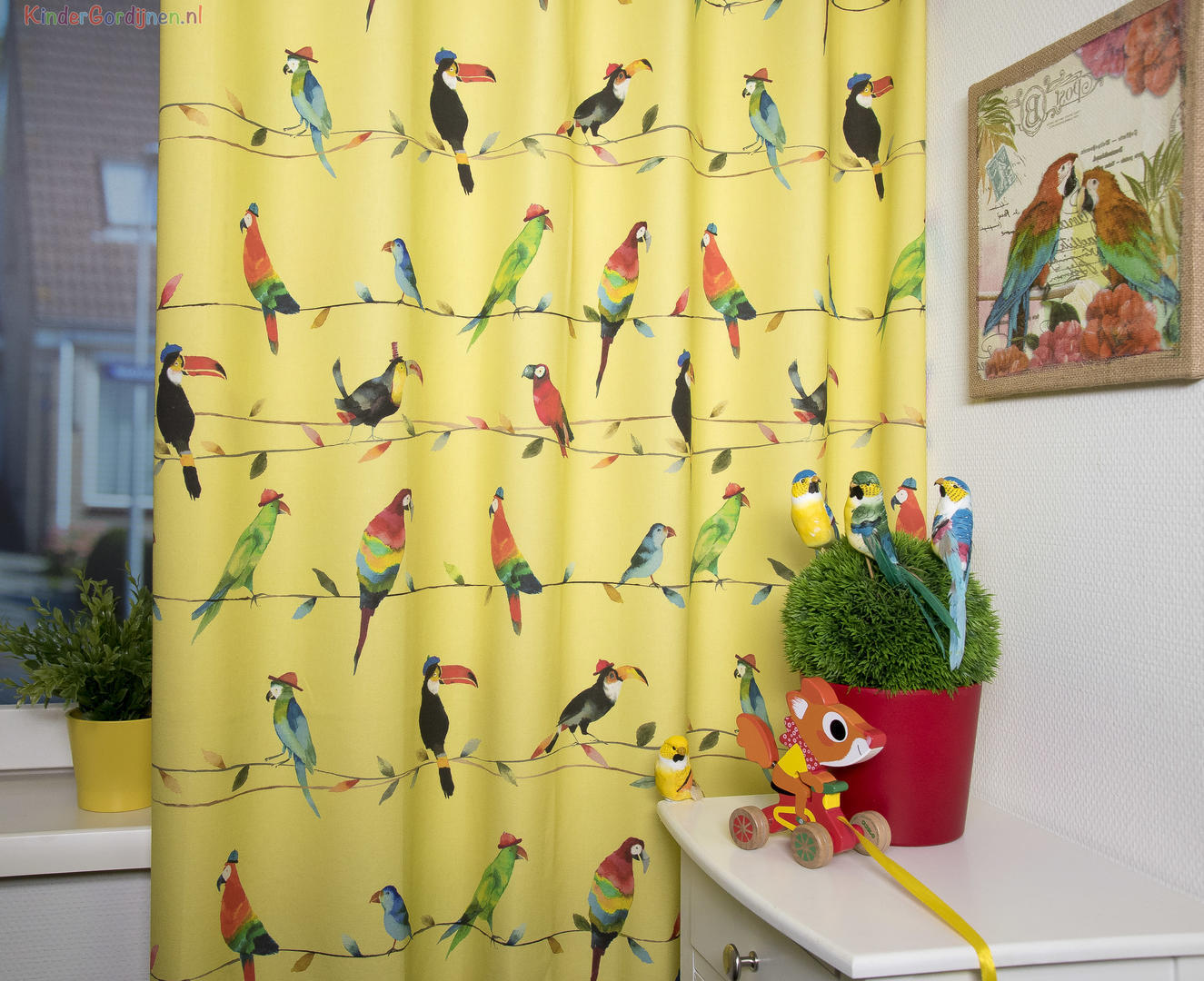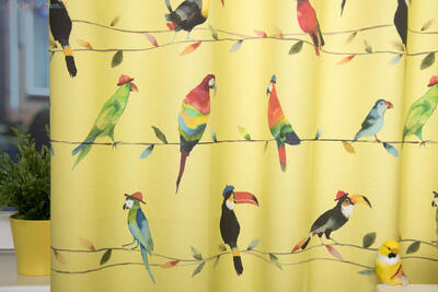 Deze gordijnstof met de naam Toucan Talk is gemaakt van de beste materialen waardoor het gordijn mooi in de plooi valt.