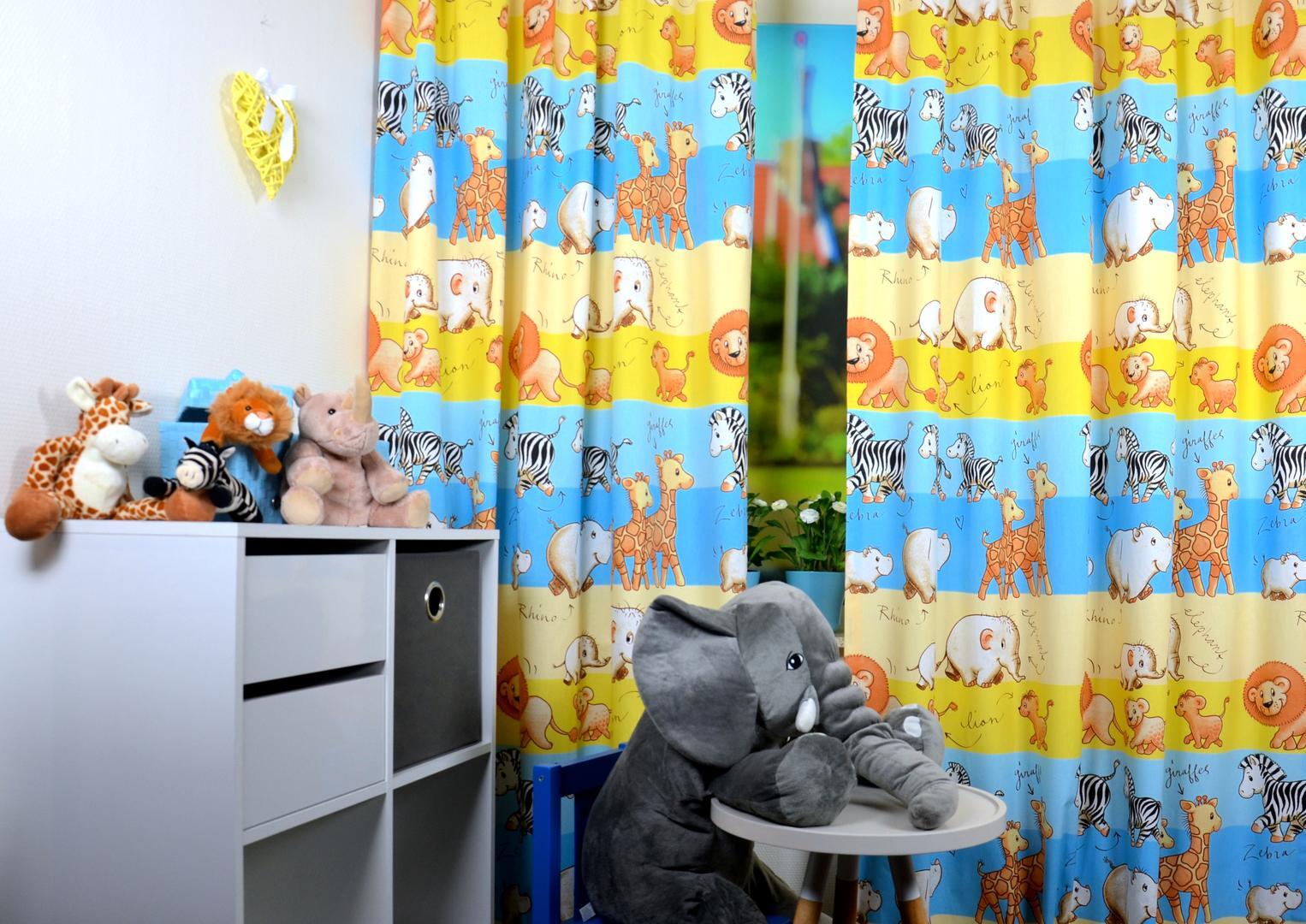 De Tisafari is een kleurrijk kindergordijn met een prachtige print van vrolijke jungledieren. Spelen in de kinderkamer is wel heel gezellig met deze aandoenlijke leeuwen, zebra’s, giraffes, olifanten en neushoorns op de gordijnen. Het Tisafari gordijn is verkrijgbaar in drie warme kleurencombinaties.