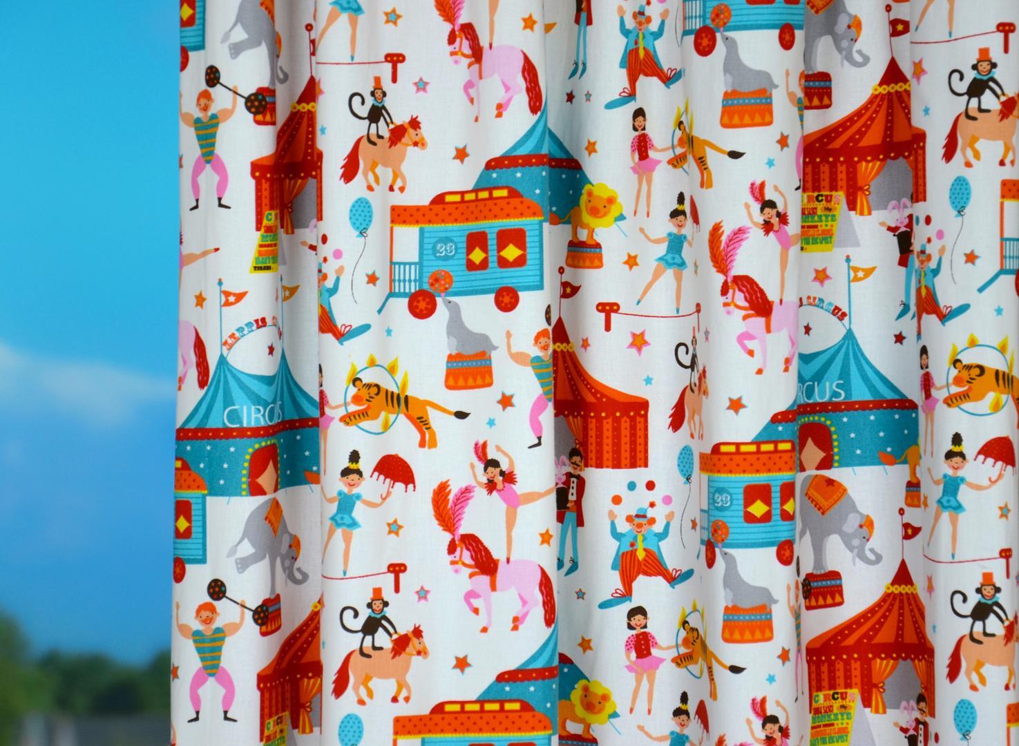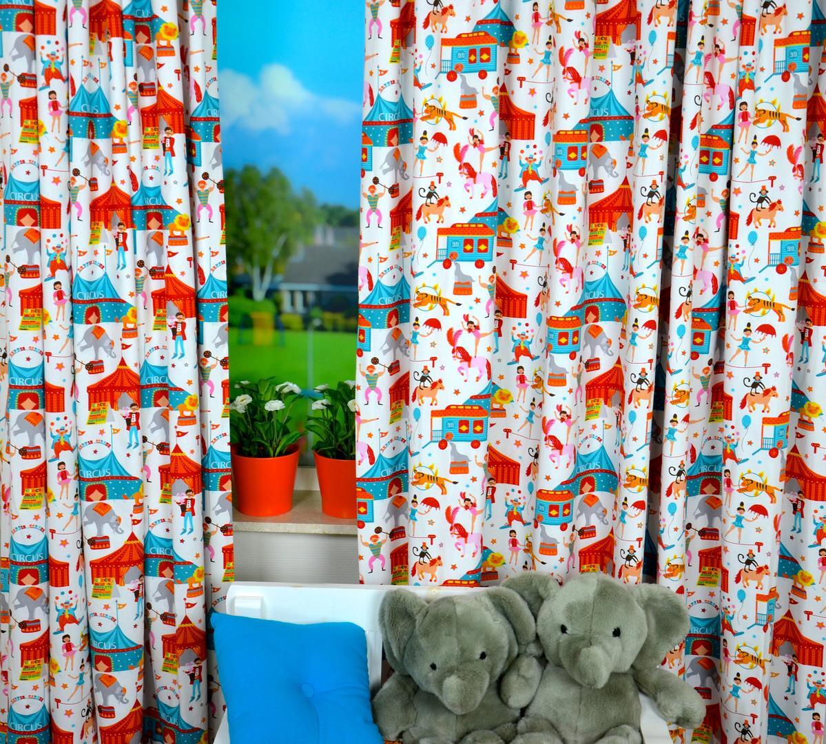 Zet de kinderkamer op z’n kop met dit vrolijke circusgordijn! Koorddanseressen, clowns, jonglerende zeehonden en tijgers die door hoepels springen… met dit kindergordijn maakt u een circustent van de kinderkamer.