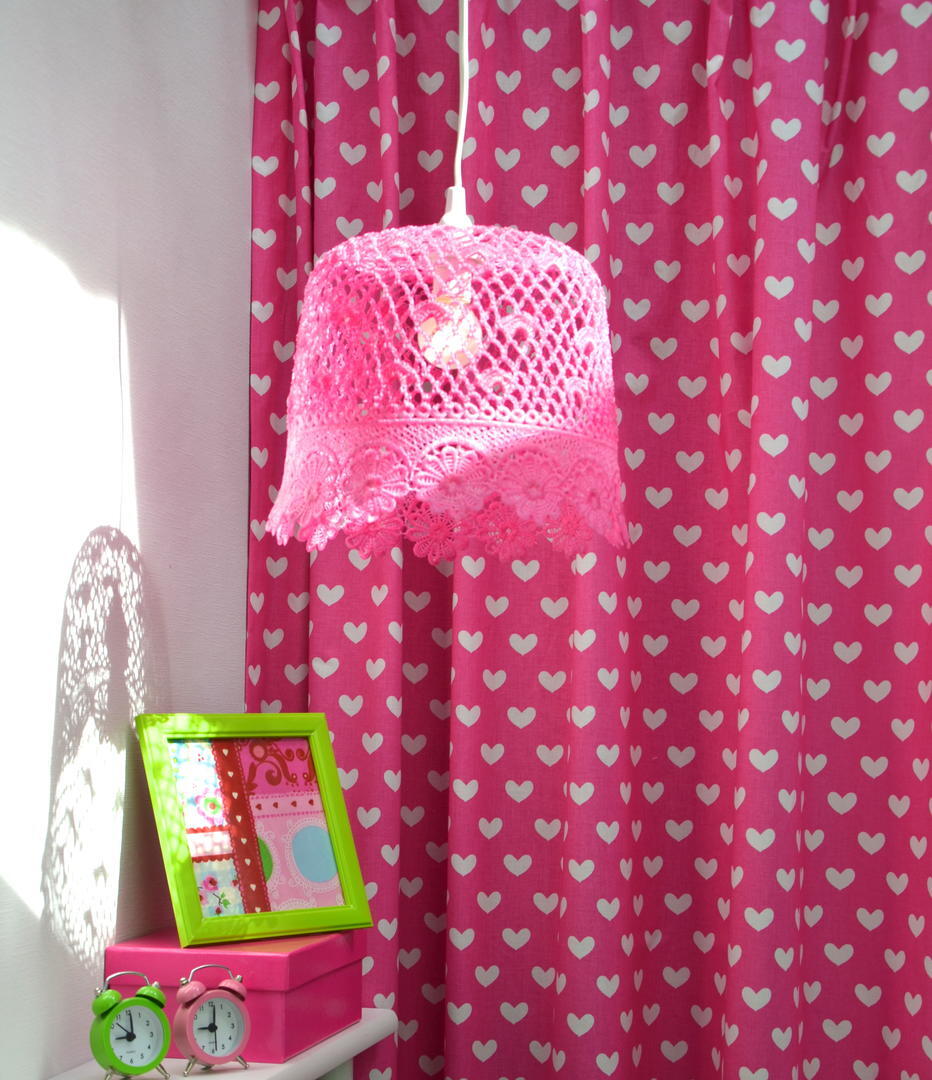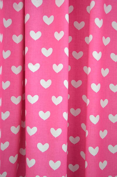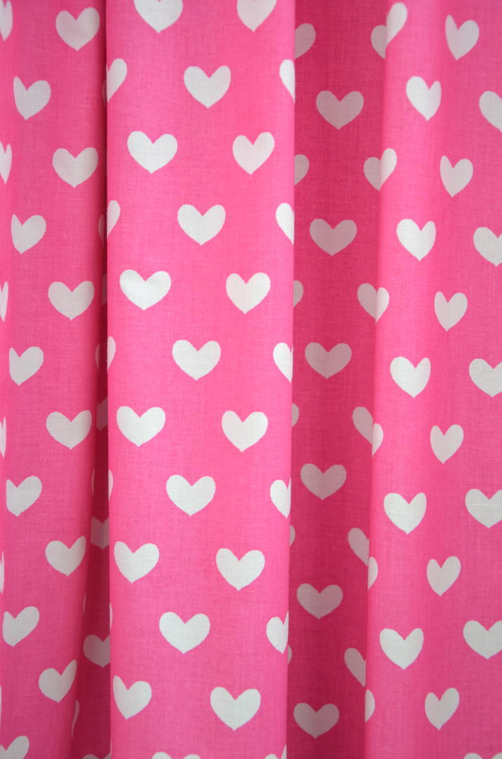 Vrolijk meisjesgordijn bomvol hartjes in een mooie roze of blauwe kleur.
