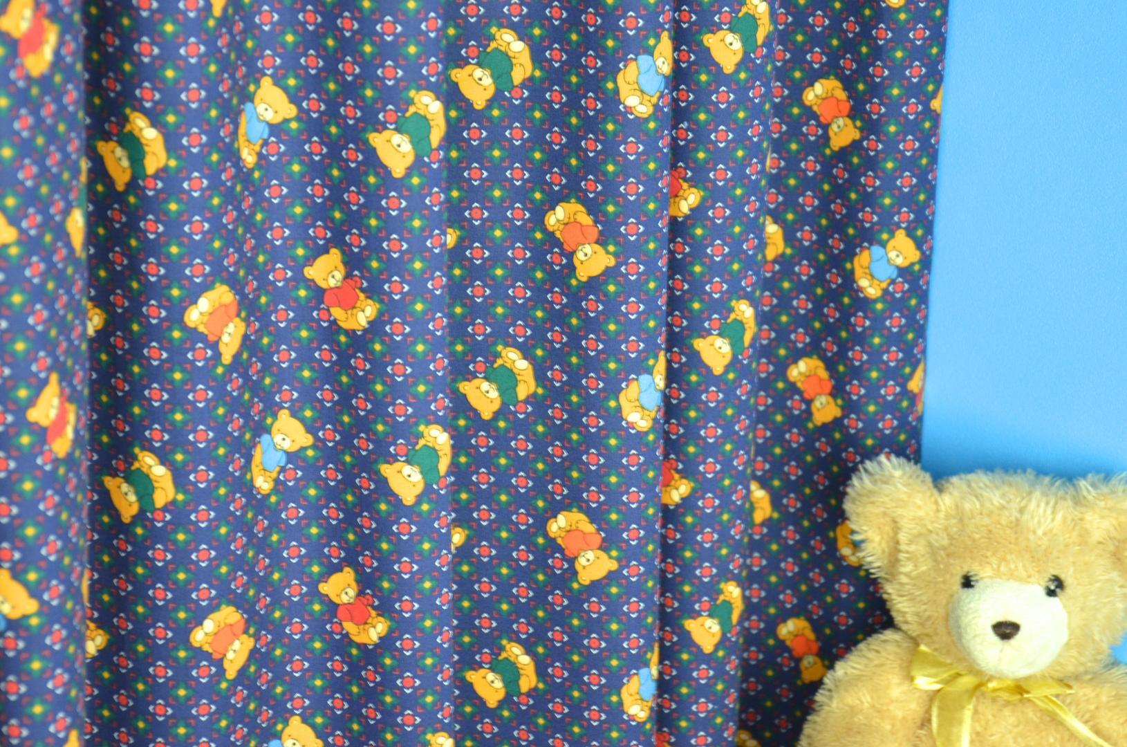 Schattig kindergordijn voor de allerkleinsten. Afbeeldingen van lieve teddyberen worden afgewisseld met een subtiel patroon op de achtergrond. Dit gordijn is geschikt voor jongens en meisjes en past ook goed in de babykamer!