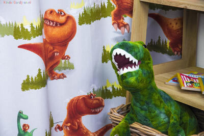 Een prachtig gordijn voor je raam! Als jij je eigen gordijnen kiest, wordt het helemaal jouw kamer. Deze gordijnstof met de naam The good dinosaur, Ramsey is gemaakt van de beste materialen waardoor het gordijn mooi in de plooi valt. Het aantal te gebruiken banen gordijnstof van 140 cm breed wordt door ons vakkundig aan elkaar geconfectioneerd zodat het dino's patroon van 64 cm mooi doorloopt. Laat voor een aangename isolatie en extra verduistering de gordijnen voeren: een verschil van dag en nacht!