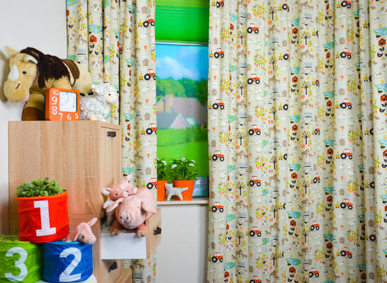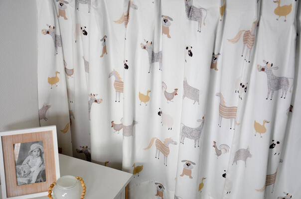 Kijk voor accenten die passen bij het thema Boerderijdieren ook eens naar de mogelijkheden met meubels en accessoires voor de inrichting van de kinderkamer. Laat voor een aangename verduistering van de kamer de stof voeren: een verschil van dag en nacht.