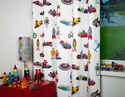 Kijk voor accenten die passen bij digital-pirnt-gordijnen met ook eens naar de mogelijkheden met meubels en accessoires voor de inrichting van de kinderkamer. Laat voor een aangename verduistering van de kamer de stof voeren: een verschil van dag en nacht.