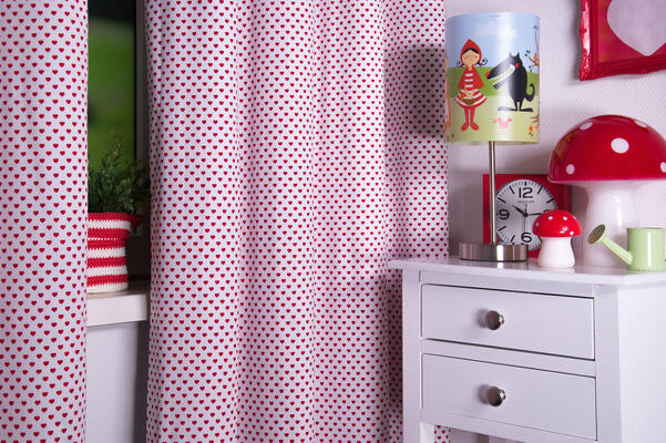 Kijk voor accenten die passen bij gordijnen met hartjes ook eens naar de mogelijkheden met meubels en accessoires voor de inrichting van de kinderkamer. Laat voor een aangename verduistering van de kamer de stof voeren: een verschil van dag en nacht.