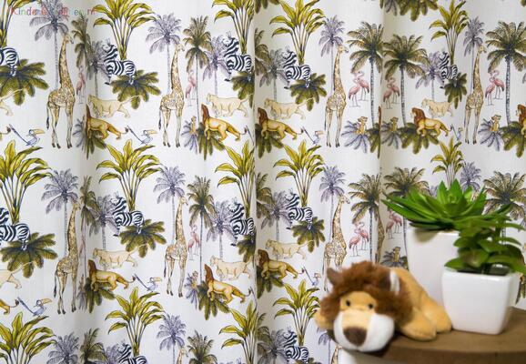 Op safari in je slaapkamer? Dankzij deze kindergordijnen kan dat veilig.  Wat doe je dus als de leeuw en de neushoorn je tegelijk aankijken? Je zegt: “Slaap lekker, tot morgen!” Ook jungle-gordijnen zijn er in vele varianten, van wild avontuurlijk tot lieflijk en speels. Gordijnen met giraffen, zebra’s en olifanten zijn geliefd. Zoekt u gordijnen voor de babykamer, kijk dan eens naar de schattige baby-olifantjes of andere ‘zachtaardige’ wilde dieren …