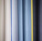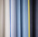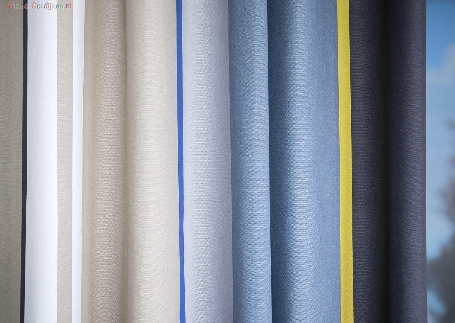 Tijdloze strepen met een razendsnelle levering! Deze gordijn variant hebben wij royaal ingekocht waardoor je met een week al een op maat gemaakt gordijn kunt hebben. De kwaliteit van de stof is fraai mat en dicht geweven. De gebruikte tinten zijn eigentijds ‘verpoederd’ waardoor het gordijn rust uitstraalt. De brede verticale banen geven de raampartij ook nog extra rust & balans. De gebruikte zacht blauwe kleur is gedrukt op een heel lichtgrijze ondergrondkleur, met oker en diep taupe grijs als accentstreep. De achterzijde is gebroken wit. Deze Scandinavisch georiënteerde kleurenopbouw laat zich uitstekend combineren met riet, zeegras, sisal en lichte en frisse pastels op wanden of beddengoed. Voor verduistering kun je het gordijn extra laten voeren.