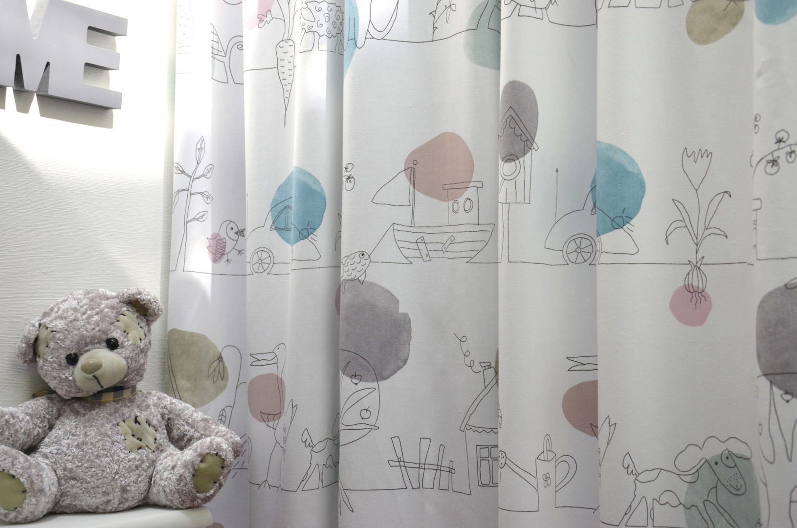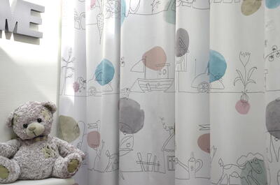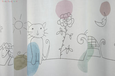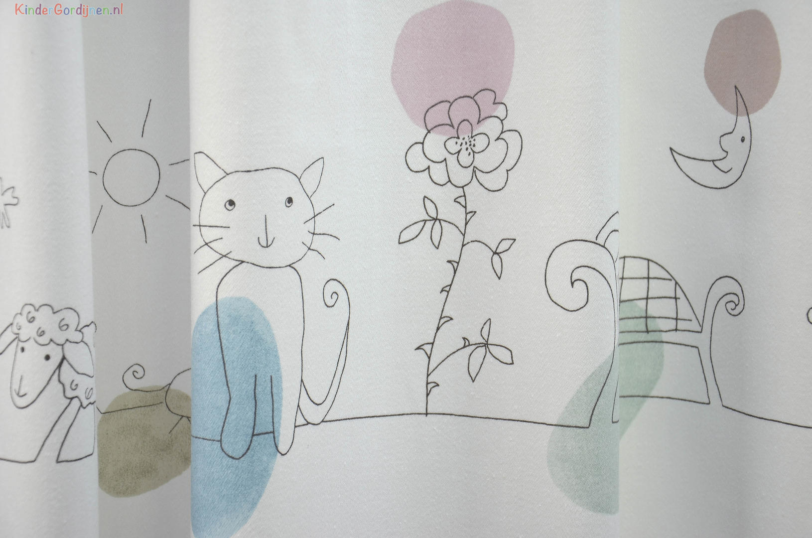 Gordijn in zachte pastelkleuren, luchtig & lieflijk! Pastel wordt veel gebruikt voor (jonge) kinderkamers omdat het zacht en vriendelijk overkomt. Wanneer je ‘de pastel’ méér power wilt geven, kan je een tint vanuit het gordijn als muurverf gebruiken. Daar creëer je een fraaie balans mee. De stof is dicht geweven, valt soepel en is door zijn samenstelling kleurecht. De tekeningetjes van het patroon zijn +/- 15 cm groot en gedrukt op de warm-witte ondergrond. Voor extra verduistering optie voeren even aanvinken.