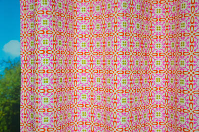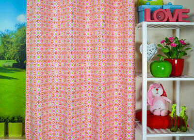 Vrolijk en lief tegelijk. Frisse mini tegelprintje, gedrukt op een dunne soepel vallende katoenen gordijnstof. De print is aan de achterzijde licht zichtbaar. Ook heel leuk voor toepassing in een kinderkamer] Te combineren met gordijnstof Marenthe met een patchworkprint of Mila met bloemprint uit dit patchworkdessin. Designed by Cozz.
