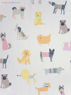 Wat een beestenboel, teckels, labradors, en dalmatiërs springen over de iets wat matte katoenen gordijnstof.